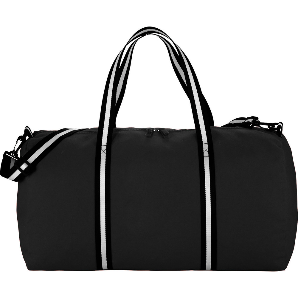 sku: JNID-035This iconic cotton weekender style is the perfect travel bag for your next adventure. Contrast stripe cotton webbing gives this classic a fresh look. Large zippered main compartment will hold all your clothes and gear. Detachable, adjustable striped cotton shoulder strap.